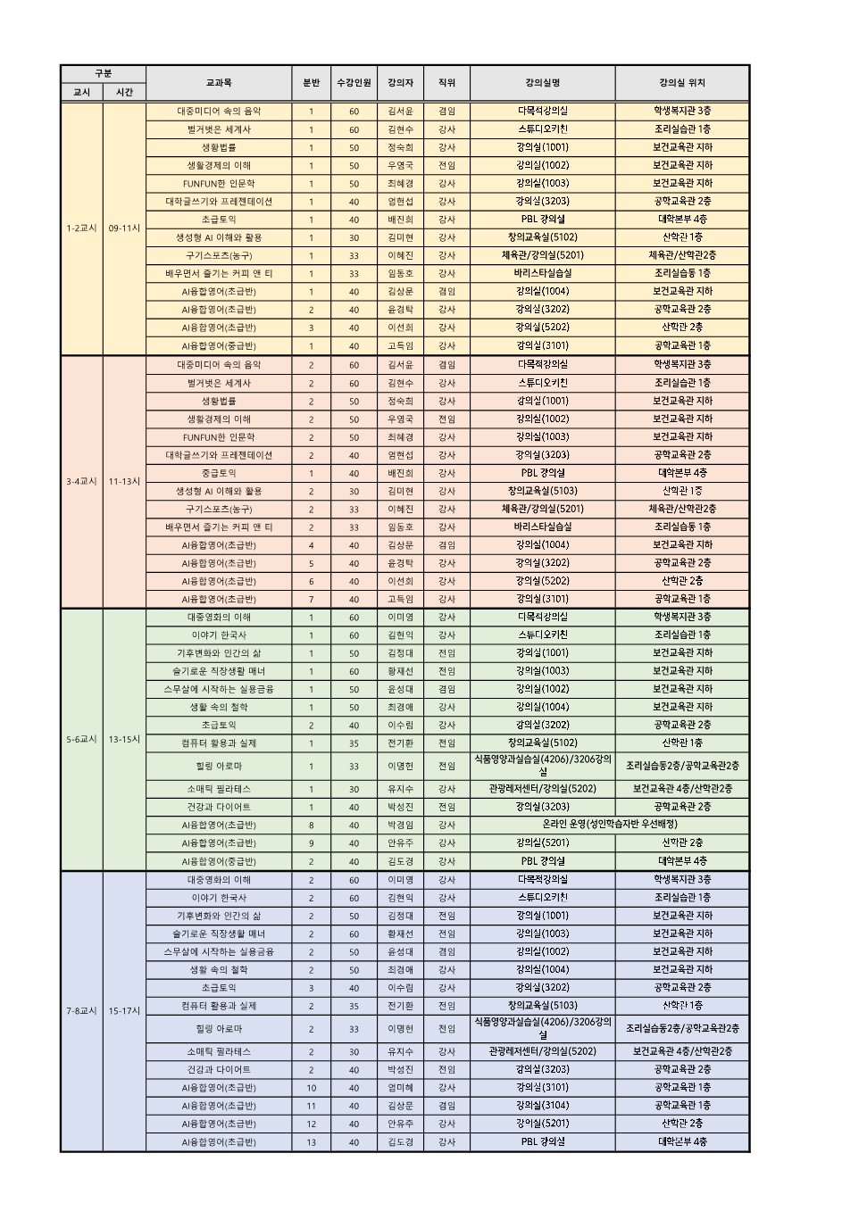 *2024학년도 1학기 자율교양 시간표